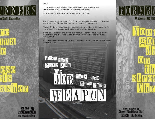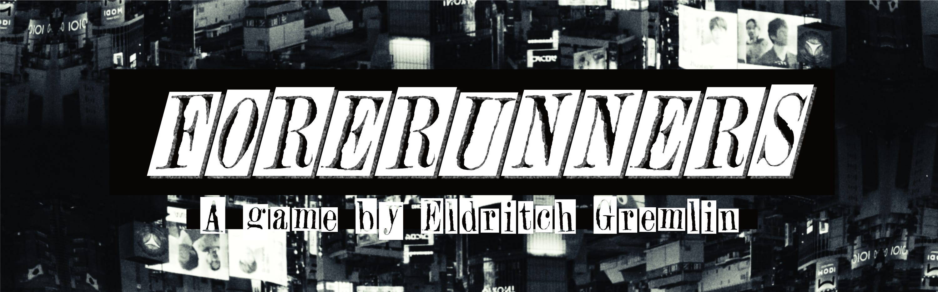 FORERUNNERS came to me halfway through the jam, half-cocked and nothing like it ended up. I’m currently reading through Snow Crash, and had only just started it at the time. [Note I have since finished Snow Crash but I already wrote this newsletter]